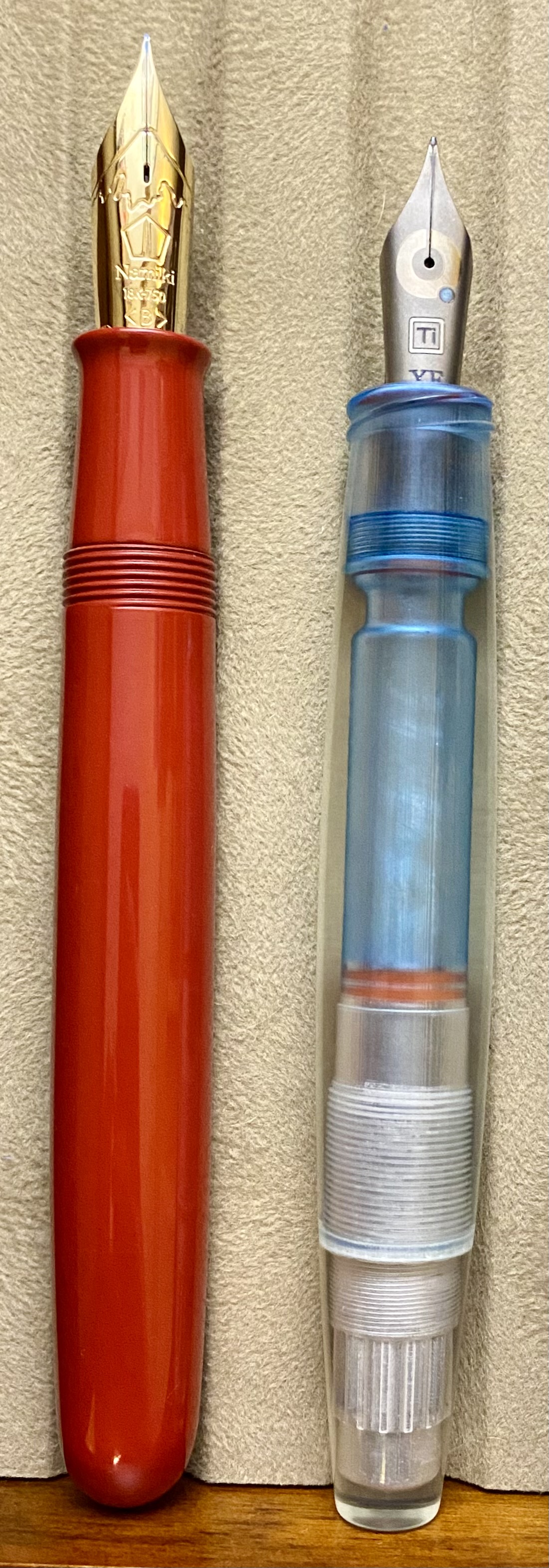 I ordered the Torpedo without a nib and the Pocket with an XF Titanium Bock 380. My original plan was to equip the Torpedo with a ’70’s 14c Medium Montblanc 149 nib that I had lying around in a Flexible Nib Factory 149–>Bock 380 housing, but ink frequently gathered behind the tipping of the nib, indicating some sort of air malfunction. Perhaps a bit of air was sneaking around the custom housing? After a month of using the pen with issues, I swapped the XF TI nib from the Pocket to the Torpedo, and the issue was resolved. The pen is now one of my best writers. The nib offers a smooth, pencil-like feedback that makes writing pleasant on both expensive and cheap paper. William’s custom nib stamp fits the technical feel of the pen perfectly.